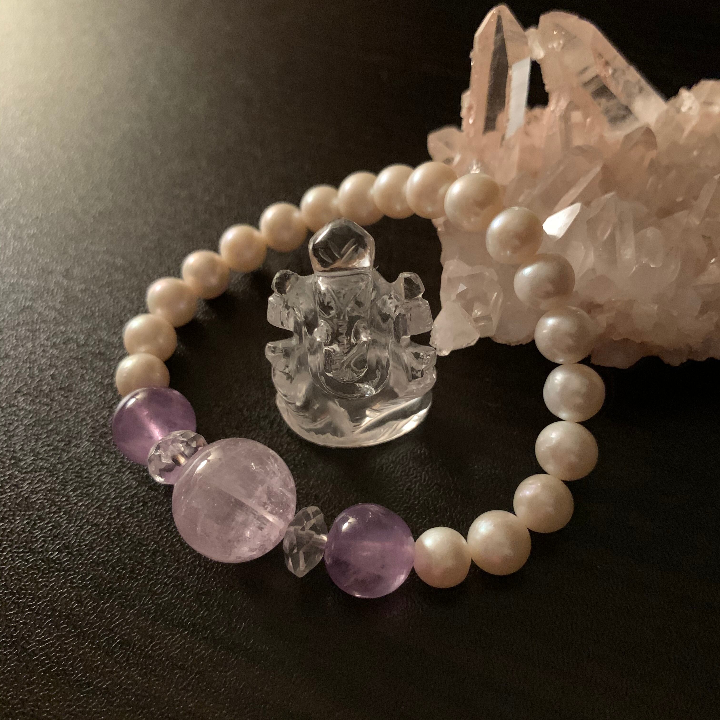 透明感抜群のクンツァイトを使用したブレスです。